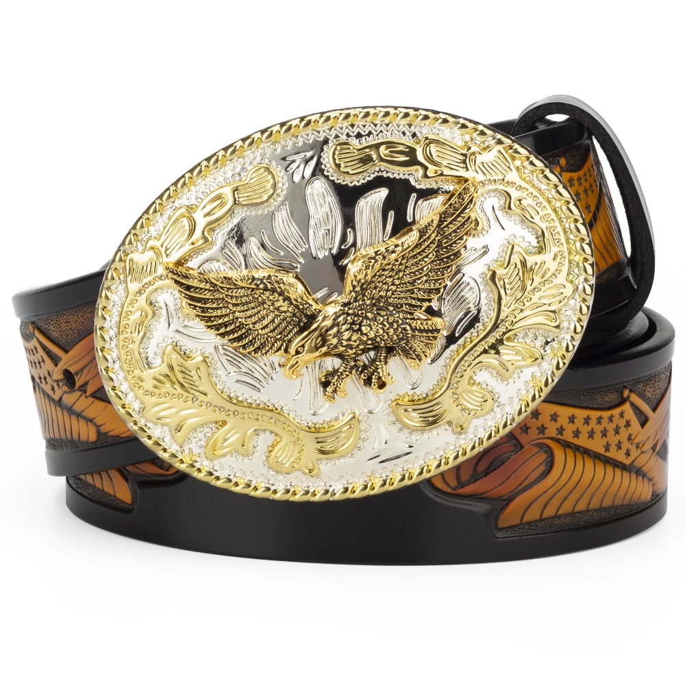Cintura in pelle maschio in lega d'oro goffrata fibbia aquila Western Cowboy doppio colore grande fibbia cintura Fahsion per gli uomini di lusso